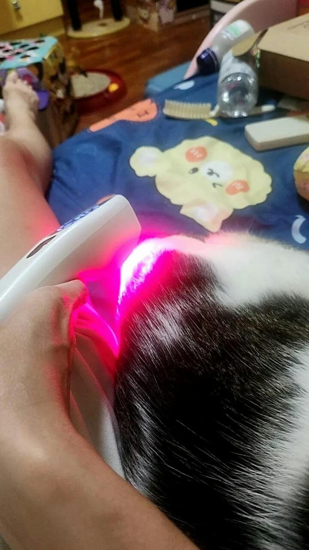 Bei meinem Fellknäuel ist der Unterschied noch nicht zu sehen. Normalerweise hänge ich das Gerät über ihr Fell, damit sie die Hitze nicht spürt.“