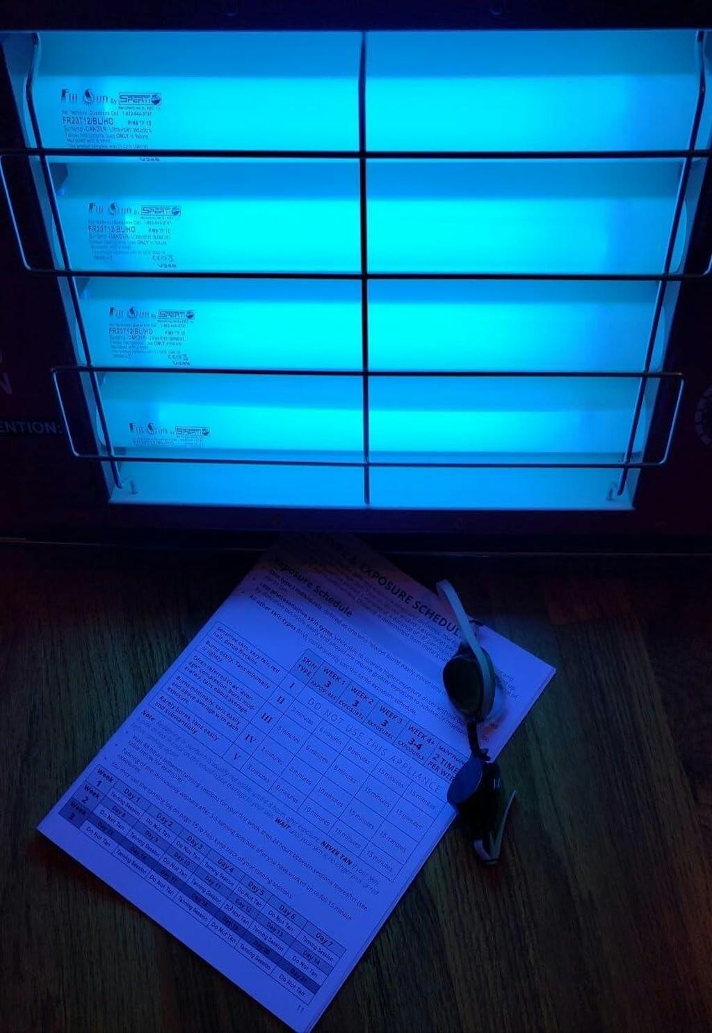 „Ich leide unter Winterdepression (SAD), Ekzemen und einem Vitamin-D-Mangel, daher waren meine Hauptgründe für den Kauf dieses Produkts gesundheitlicher Natur. Außerdem mag ich Sonnencreme nicht besonders und habe in den warmen Monaten gern eine Grundbräune, um meine Haut zu schützen. Da mein Hauttyp irgendwo zwischen den Typen liegt, dauert es bei mir recht lange, bis ich überhaupt eine Bräune aufbauen kann – selbst wenn ich bereits eine minimale Grundbräune habe, kann ich täglich eine Stunde in der Sonne verbringen, ohne wirkliche Fortschritte zu sehen. Das Bräunen im Freien hat einfach zu viel Zeit in Anspruch genommen und hat zudem unschöne Bräunungslinien hinterlassen. Diese Bräunungslampe war die perfekte Lösung für all das.