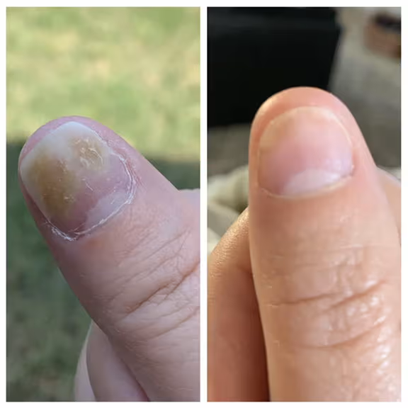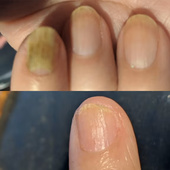 Unglaublich. 35 Jahre völlige Peinlichkeit wegen Zehennagelpilz. Ich habe dieses Produkt vier Monate lang regelmäßig verwendet, weil ich so entschlossen war. Um sicherzustellen, dass der Pilz nicht erneut auftritt, verwenden Sie ihn weiterhin dreimal pro Woche. An der Spitze des Nagels gibt es immer noch eine gewisse Verfärbung, die jedoch nur vorübergehend ist, da es so lange dauert, bis der alte Zehennagel nach einer Beschädigung vollständig nachwächst.